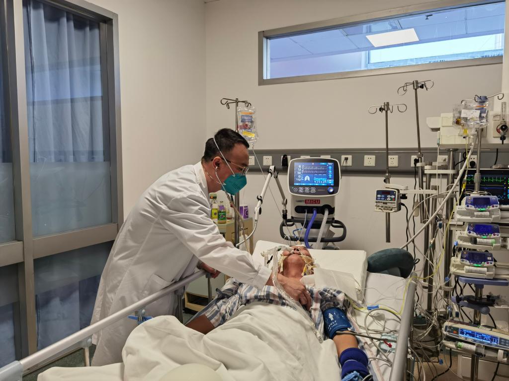 天津市人民醫院ICU主任辛紹斌正在查看患者情況。(受訪(fǎng)者供圖)