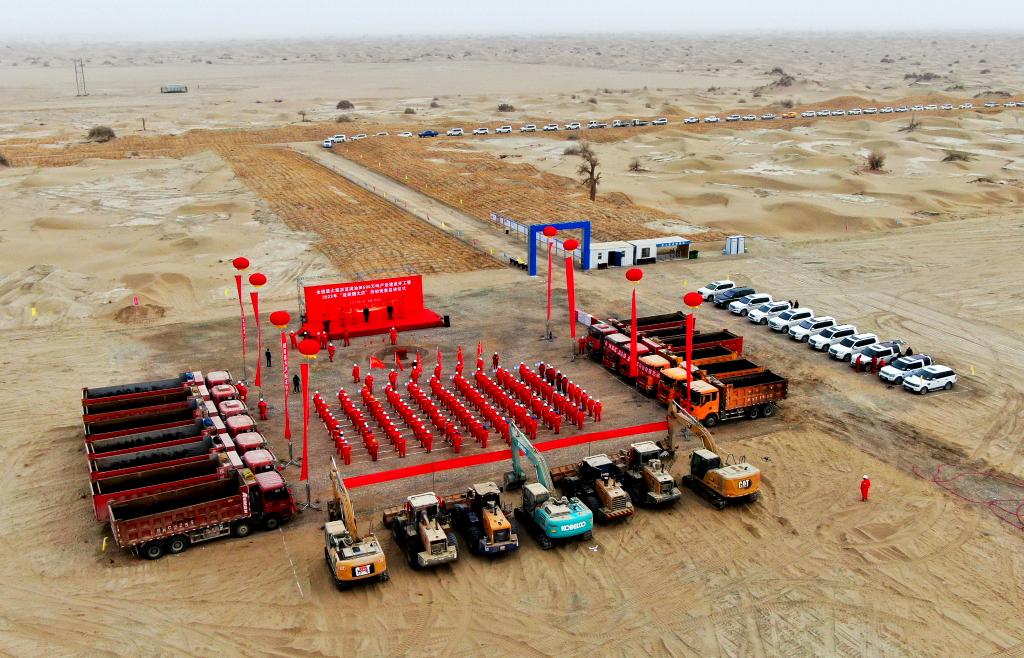 2月10日,位于塔克拉瑪干沙漠腹地的我國最大超深油田——富滿(mǎn)油田500萬(wàn)噸產(chǎn)能建設工程開(kāi)工。(受訪(fǎng)單位供圖)