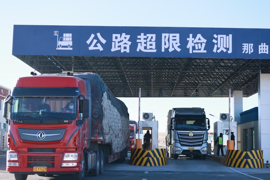 貨車(chē)正在通過(guò)那拉高速公路那曲超限檢測站。(西藏自治區交通運輸廳供圖)