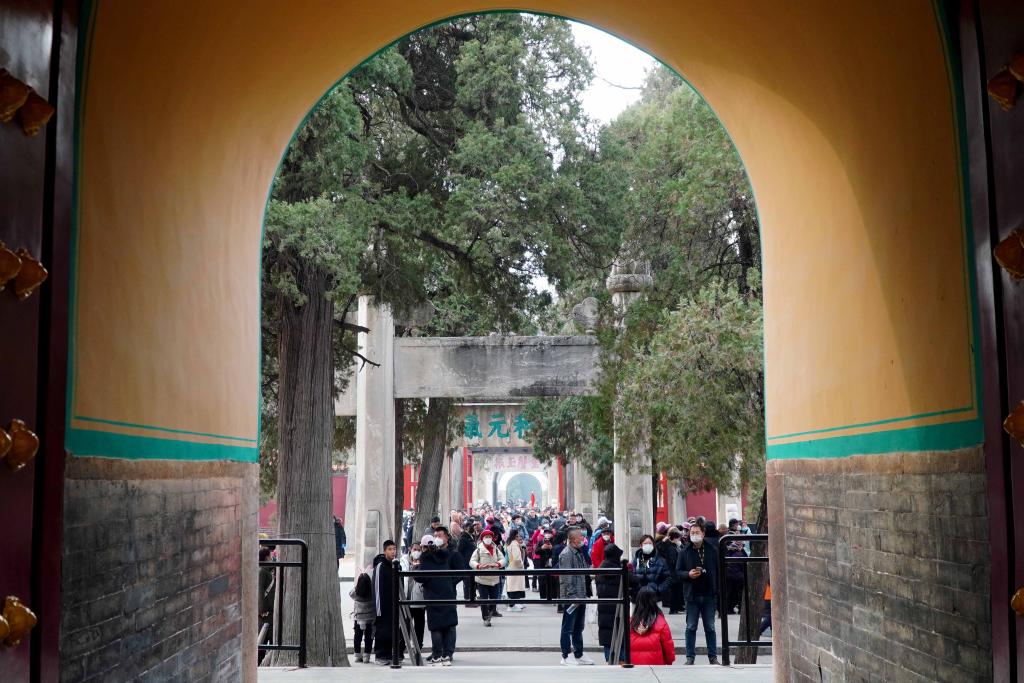山東省曲阜市,游客在曲阜“三孔”旅游區游覽。新華社記者徐速繪 攝
