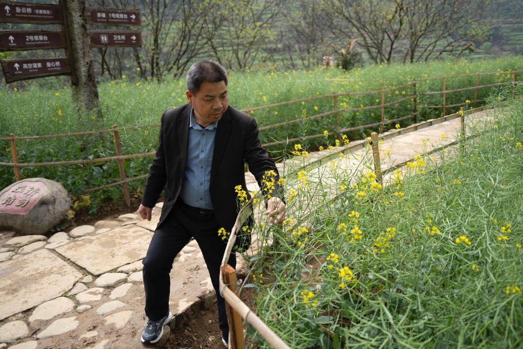 李端銘在查看油菜生長(cháng)情況。程五坤 攝