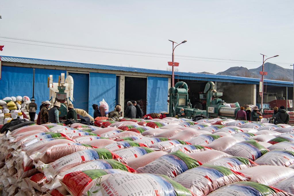 這是江孜縣紫金鄉努堆村的農機農民專(zhuān)業(yè)合作社內,已完成裝袋的青稞良種(3月20日攝)。新華社記者孫非 攝