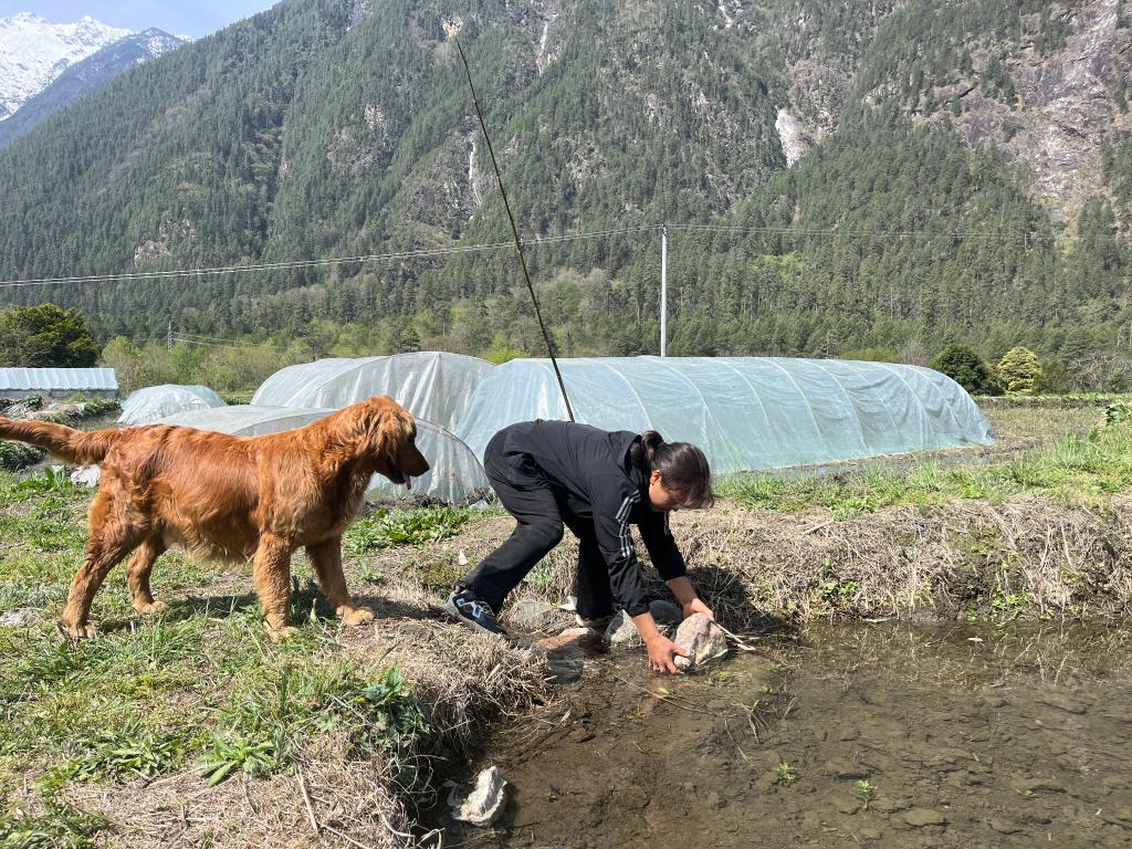4月春風(fēng)和煦,32歲的珞巴族姑娘安陽(yáng)麗,深一腳淺一腳地踩在水稻田里,熟練操作著(zhù)旋耕機對自家7畝地進(jìn)行翻土。頭頂太陽(yáng),安陽(yáng)麗皮膚曬得黝黑,汗珠順著(zhù)臉頰不停往下流。