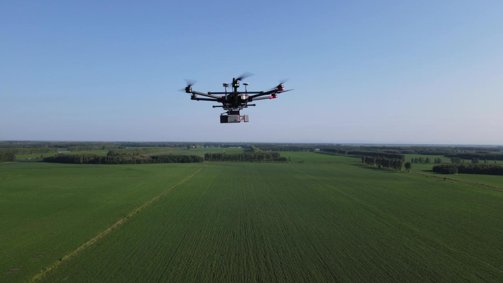搭載激光雷達的無(wú)人機正在進(jìn)行農業(yè)科技作業(yè)。(受訪(fǎng)者供圖)