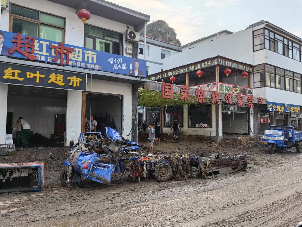眼下,洪水雖然退去,但遺留下的災害痕跡依然觸目驚心:街道上淤積著(zhù)棕黑色污泥,散發(fā)著(zhù)刺鼻臭味;被洪水沖毀的車(chē)輛,廢棄在道路兩旁,車(chē)內堆積著(zhù)淤泥、雜草;部分臨街商鋪一樓門(mén)窗被毀,地板上淤泥厚度約有1米……