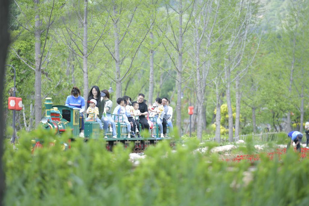 家長(cháng)帶著(zhù)孩子在提升改造后的郭家溝娛樂(lè )項目里愉快玩耍。新華社發(fā)(王金一攝)