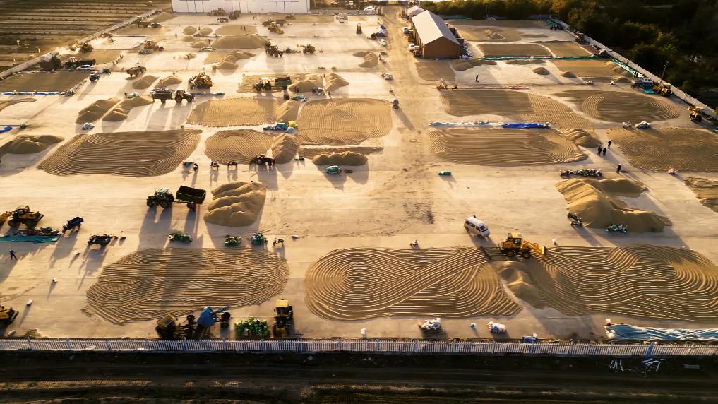 在農家的場(chǎng)院、村屯、合作社、農場(chǎng)、糧庫,水稻、玉米、大豆堆積的一座座“糧山”,散發(fā)著(zhù)豐收的色澤。