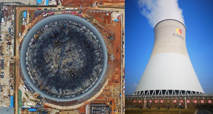 左圖:豐城發(fā)電廠(chǎng)施工平臺倒塌事故現場(chǎng)(2016年11月24日攝)。新華每日電訊記者萬(wàn)象攝;右圖:復建后的豐城發(fā)電廠(chǎng)7號冷卻塔(2023年2月15日攝)。新華每日電訊記者余賢紅攝