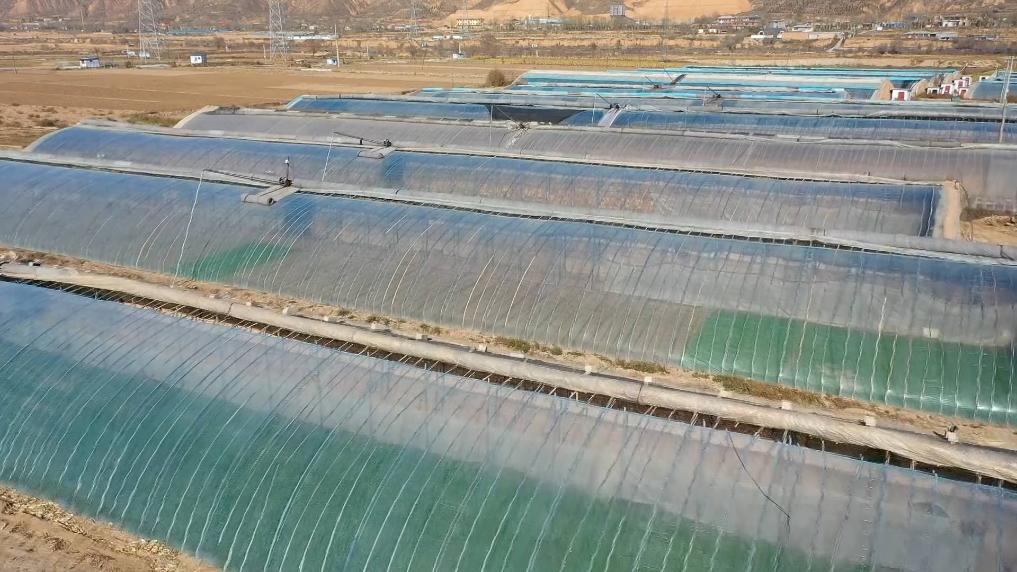 寒冬時(shí)節,陽(yáng)光暖照。一排排蔬菜大棚錯落于旱塬之上,為黃土地增添了色彩。