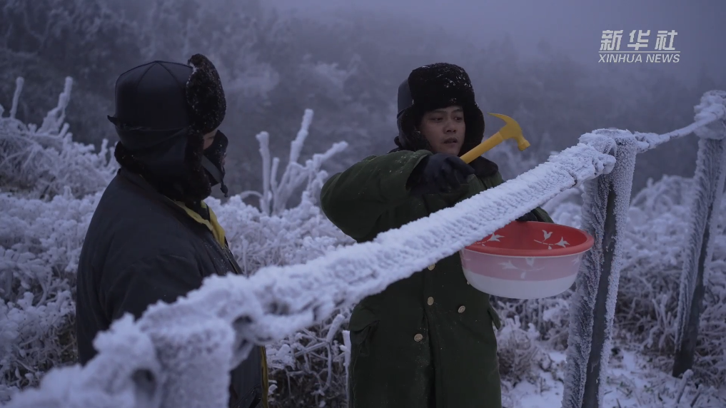 寒潮伊始,來(lái)自國網(wǎng)懷化供電公司的輸電運檢員工尹斌和同事龍昱君就已經(jīng)來(lái)到位于西晃山頂的110千伏西公線(xiàn)監視哨所。