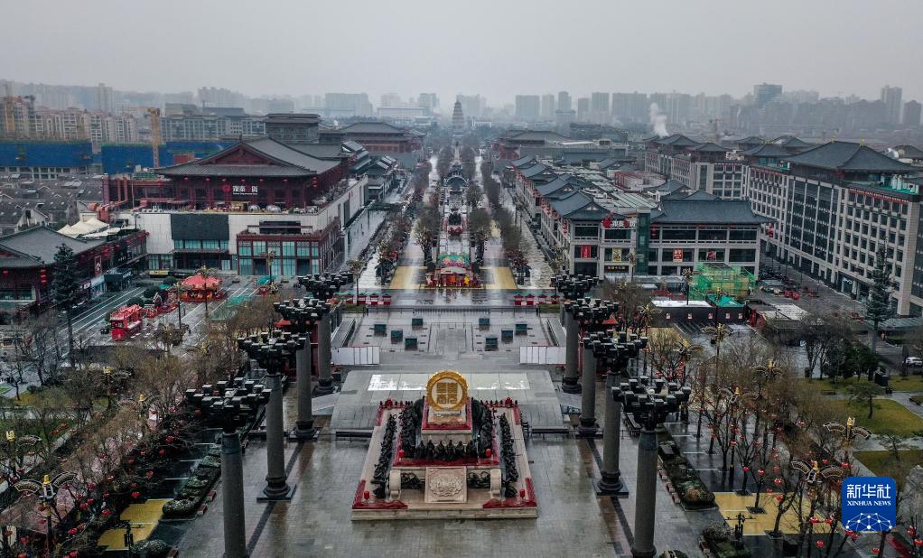 12月25日,封閉后的西安市大唐不夜城一片寧靜(無(wú)人機照片)。