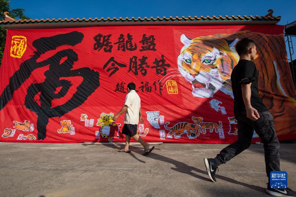 為迎接農歷虎年的到來(lái),文冬當地一家華人團體邀請畫(huà)家和學(xué)生一起創(chuàng )作了一幅11.5米長(cháng)、4.5米寬的老虎年畫(huà)。新華社發(fā)(張紋綜攝)