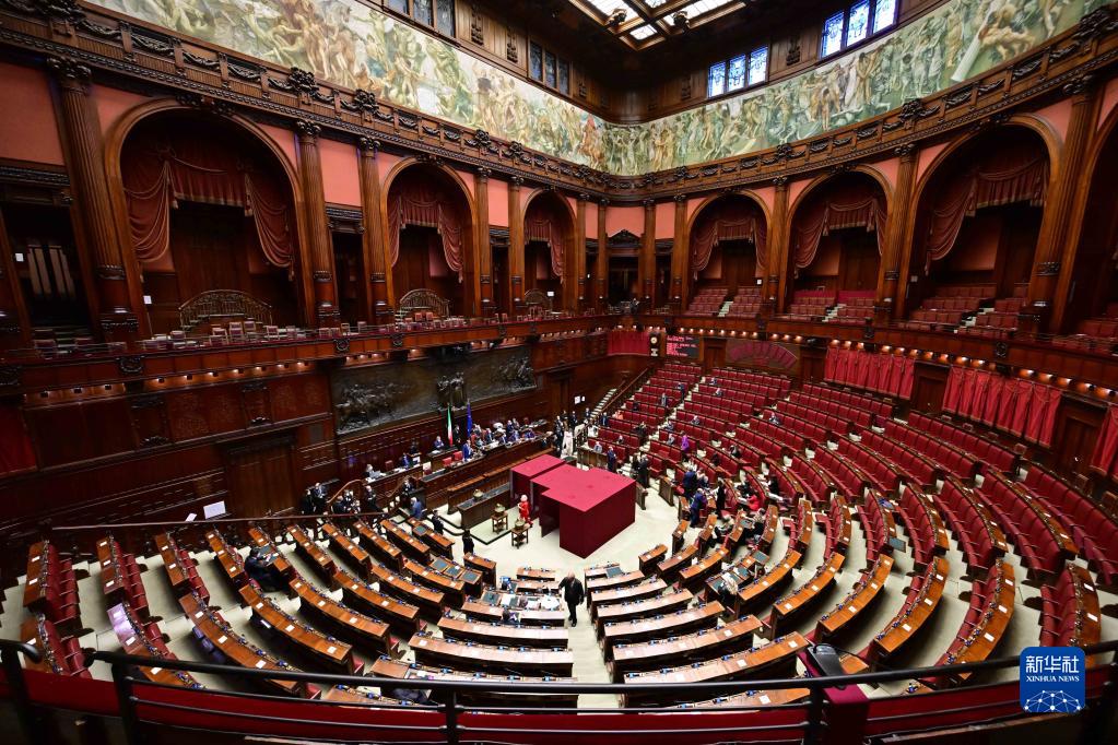 這是1月25日在位于羅馬的意大利眾議院拍攝的投票現場(chǎng)。