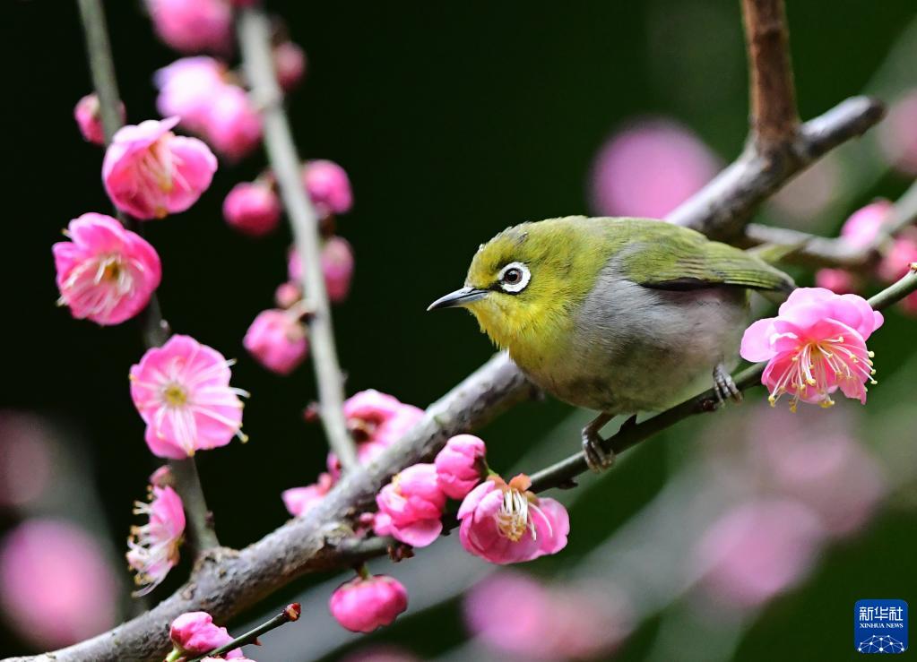 當日是二十四節氣中的立春,花兒開(kāi)放,生機勃勃,引來(lái)小鳥(niǎo)“鬧春戲花”。
