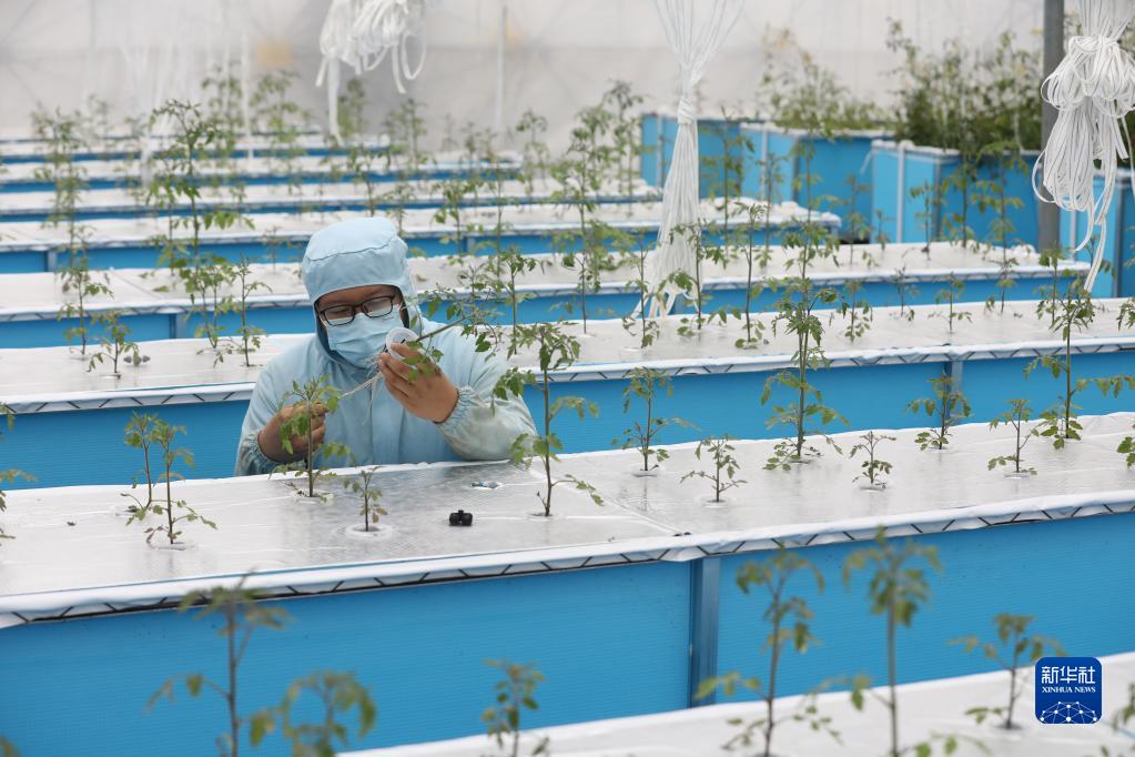 2月11日,在安徽省合肥市蜀山區南崗鎮一處無(wú)土栽培大棚里,技術(shù)人員在觀(guān)察蔬菜的長(cháng)勢。