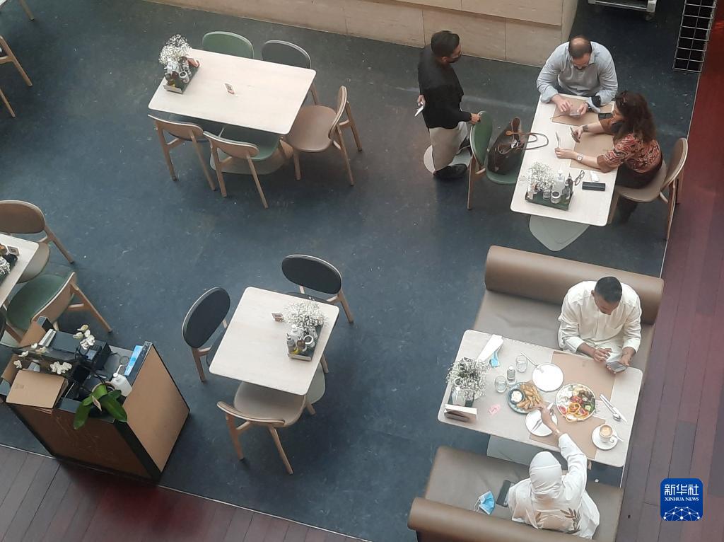 2月20日,在科威特費爾瓦尼耶省,人們坐在一處商場(chǎng)的餐廳內。
