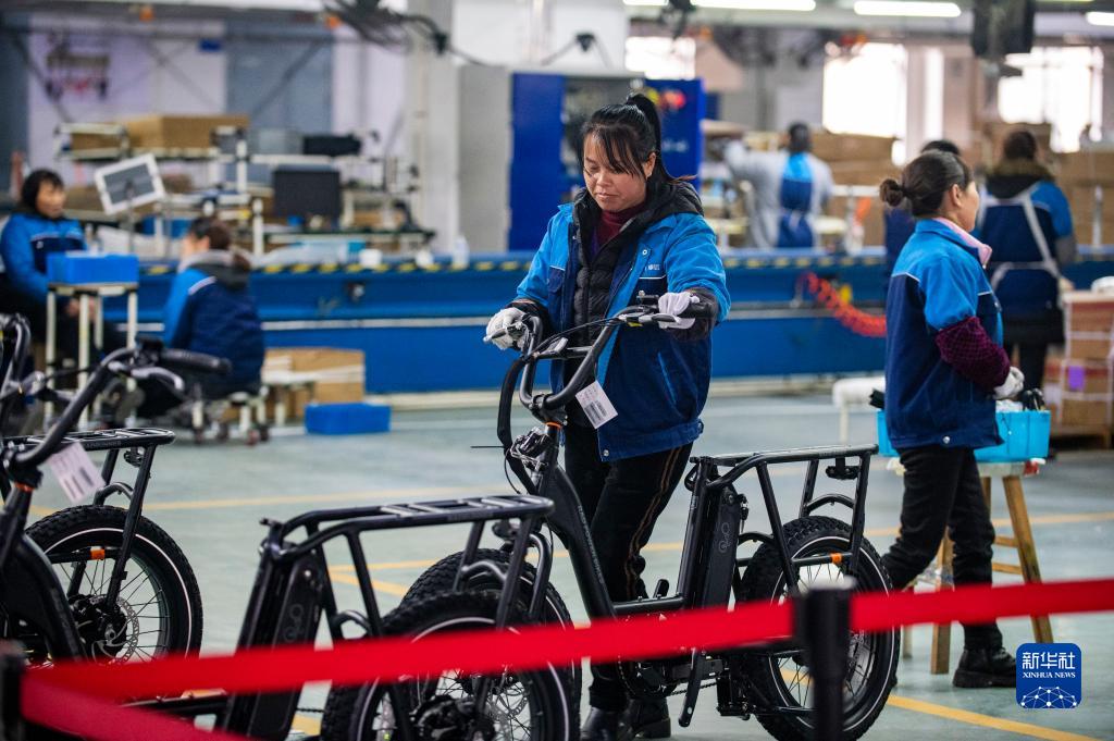 2月23日,工人在金華市金東區一家電動(dòng)自行車(chē)生產(chǎn)企業(yè)總裝車(chē)間內進(jìn)行整車(chē)下線(xiàn)作業(yè)。