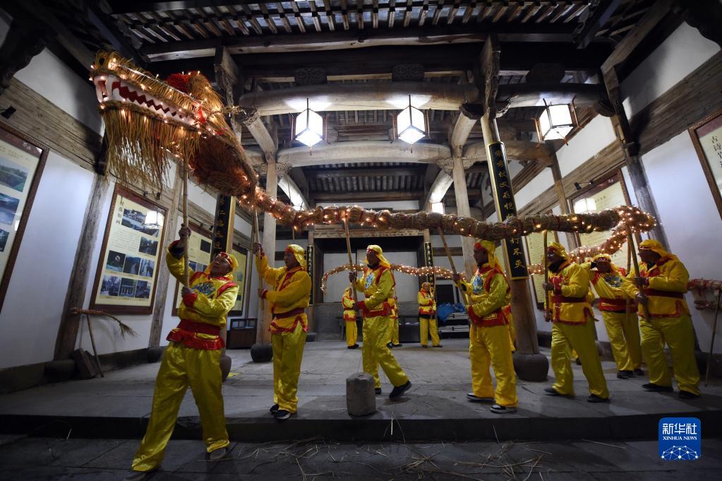 3月2日,在黃山市徽州區蜀源村,“舞草龍”隊伍從村中祠堂出發(fā),開(kāi)始在全村巡游。