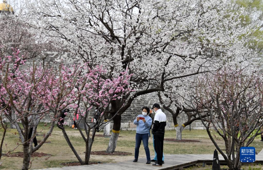 近期,北京市明城墻遺址公園內桃花盛開(kāi),吸引大批市民前來(lái)賞花踏青。