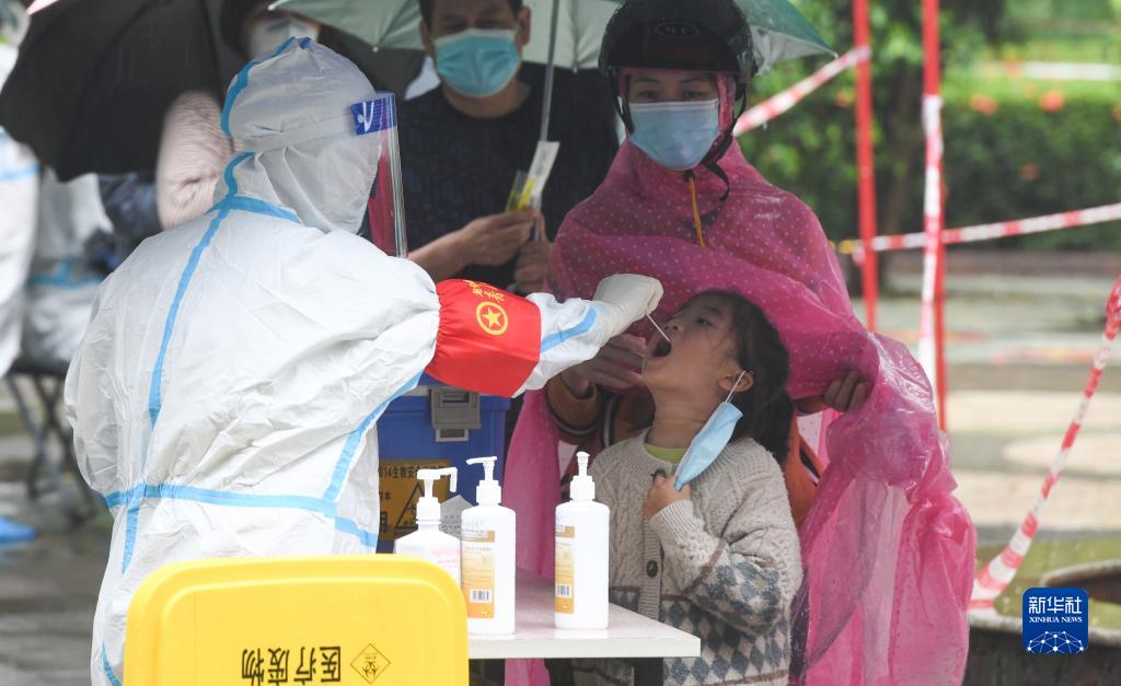 4月1日,在??谑旋埲A區金貿街道國貿社區新冠肺炎核酸采樣點(diǎn),居民接受核酸采樣。