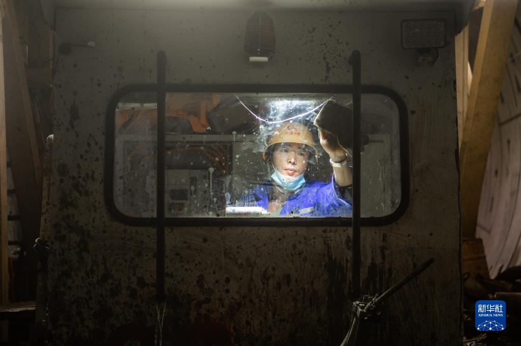 4月1日,工人在武漢地鐵前川線(xiàn)工程現場(chǎng)擦拭隧道車(chē)前窗玻璃。