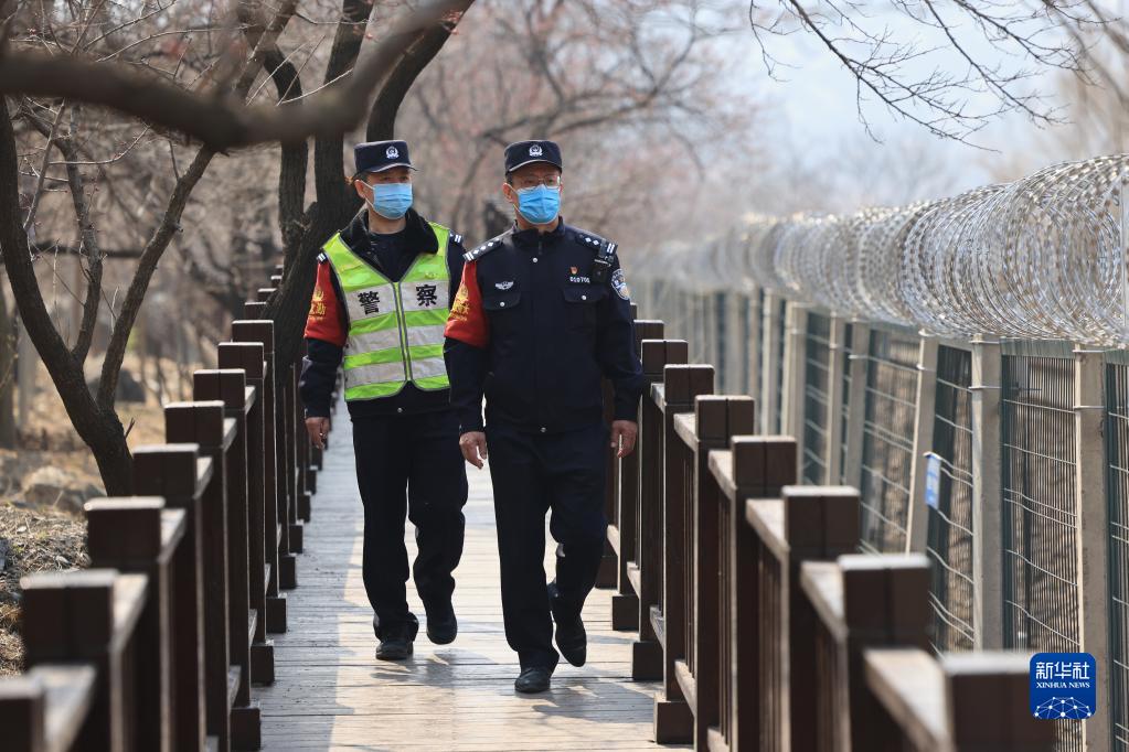 4月4日,北京鐵路公安處南口站派出所的民警在居庸關(guān)長(cháng)城附近線(xiàn)路進(jìn)行安全隱患排查工作。
