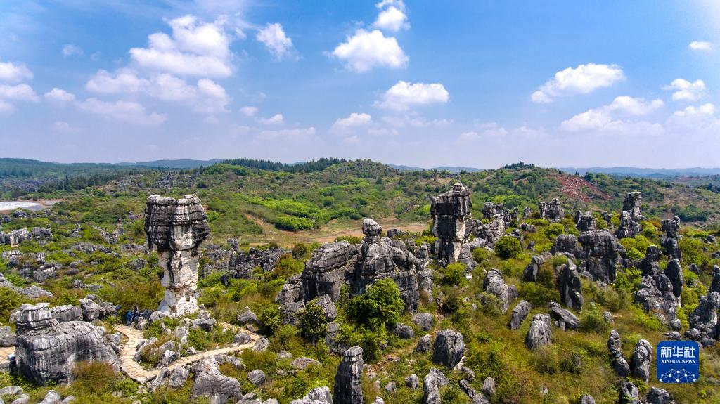 這是4月10日拍攝的“萬(wàn)年靈芝”石林景觀(guān)(無(wú)人機照片)。