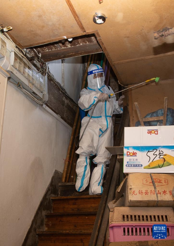 上海市黃浦區外灘街道北京里是一個(gè)老小區。5月8日,居委會(huì )組織對小區環(huán)境進(jìn)行全面消殺,以阻斷病毒傳播鏈。