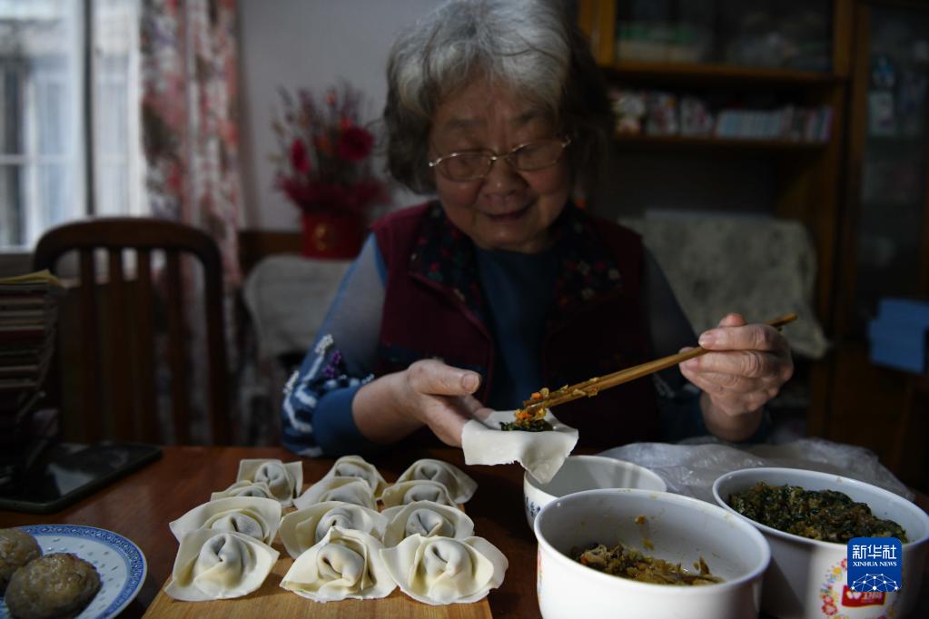 5月18日,張愛(ài)蘭在安徽蕪湖的家中包餛飩。