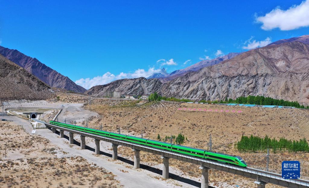 4月14日,復興號列車(chē)行駛在西藏朗縣境內。