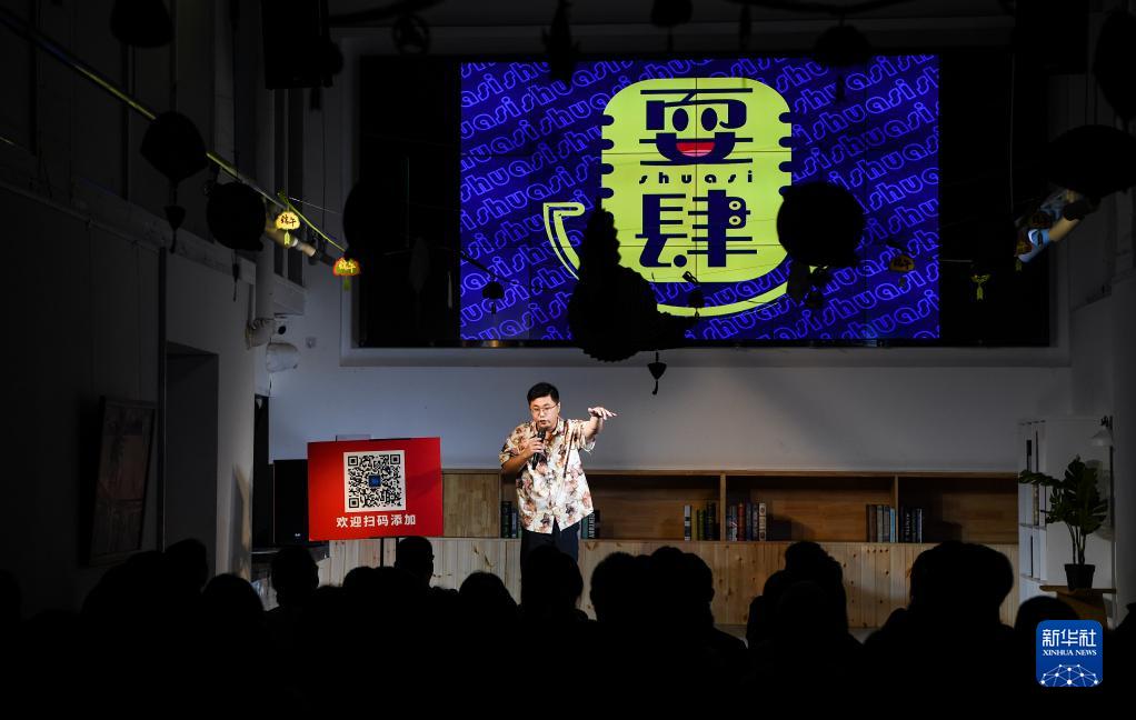 重慶北倉文創(chuàng )街區一小劇場(chǎng)內,工作人員在表演(6月3日攝)。