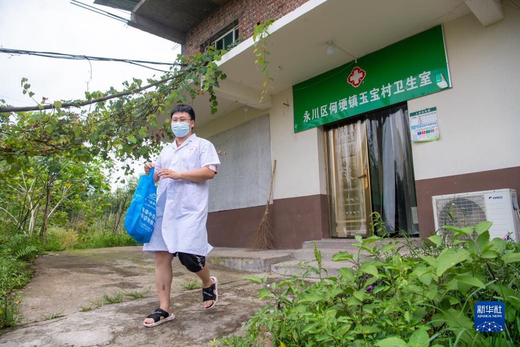 7月1日,村醫胡嘯走出玉寶村衛生室,準備去村民家中出診。