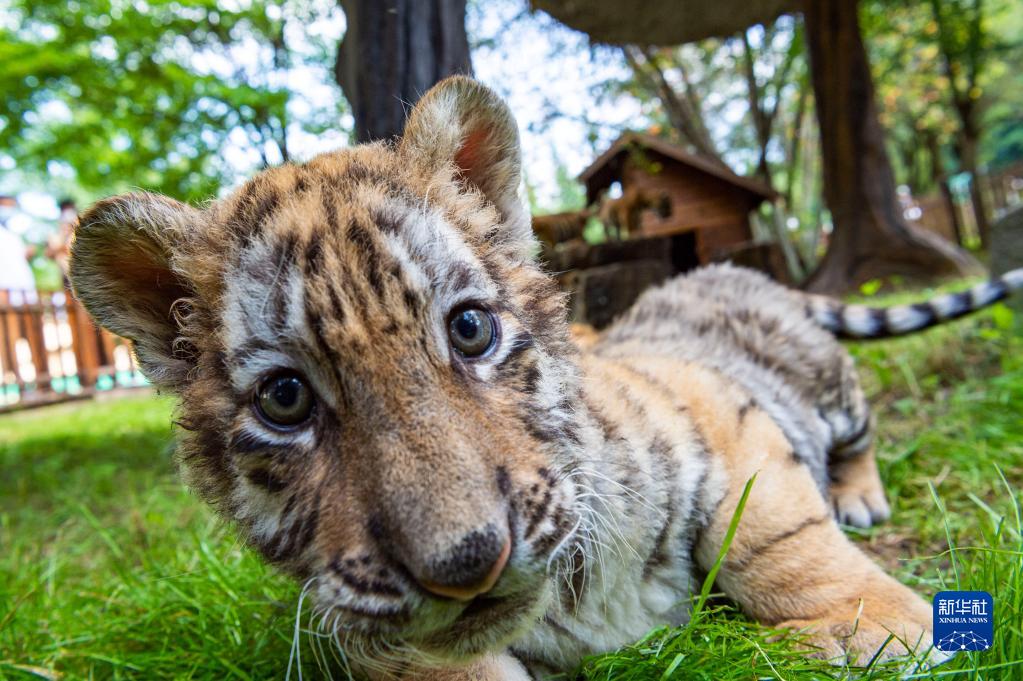 7月29日,在橫道河子東北虎林園的東北虎“幼兒園”,幼虎在玩耍。