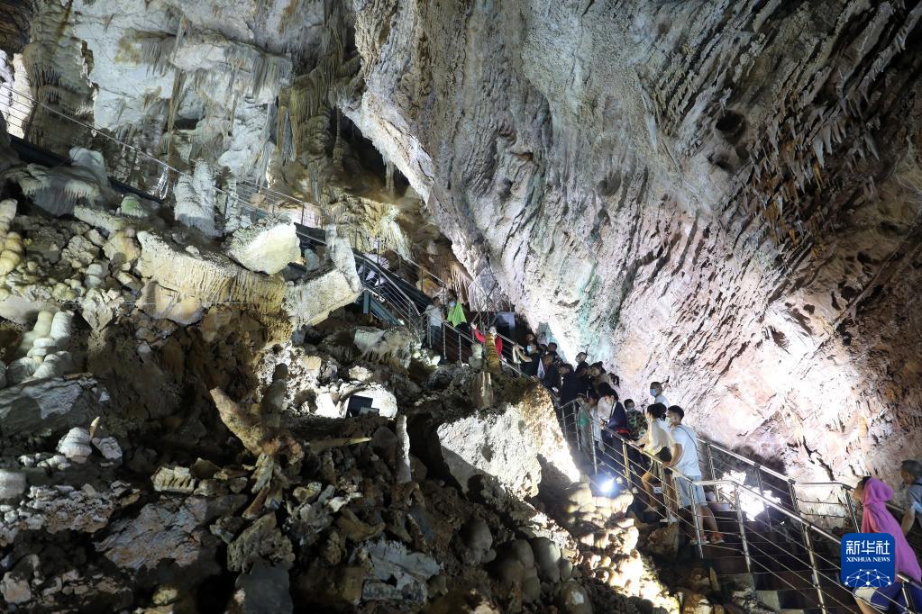 8月3日,游客在興隆溶洞內參觀(guān)游玩。