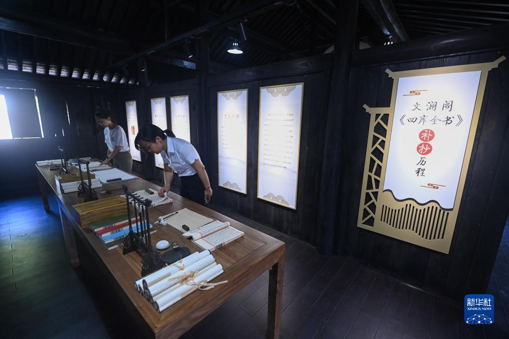 8月5日,參觀(guān)者在“文瀾閣《四庫全書(shū)》抗戰西遷首站研學(xué)中心”內參觀(guān)。