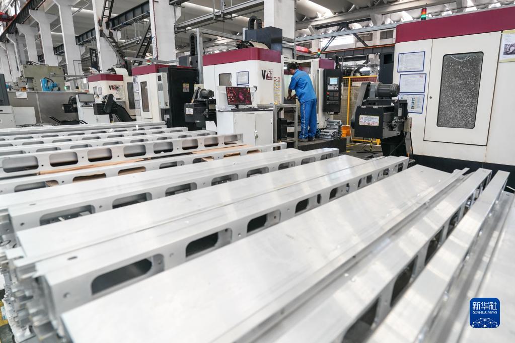 8月6日,從事軌道交通車(chē)輛配套產(chǎn)品研發(fā)生產(chǎn)的今創(chuàng )集團股份有限公司的工人使用激光切割機生產(chǎn)。