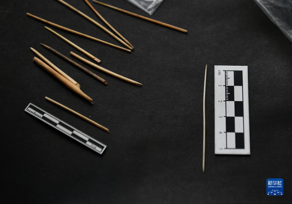 這是陜西神木石峁遺址皇城臺出土的部分骨針(8月6日攝)。