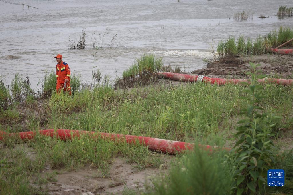 8月7日,搶險人員在遼寧盤(pán)錦繞陽(yáng)河左岸曾經(jīng)的河堤潰口北段進(jìn)行排澇作業(yè)。