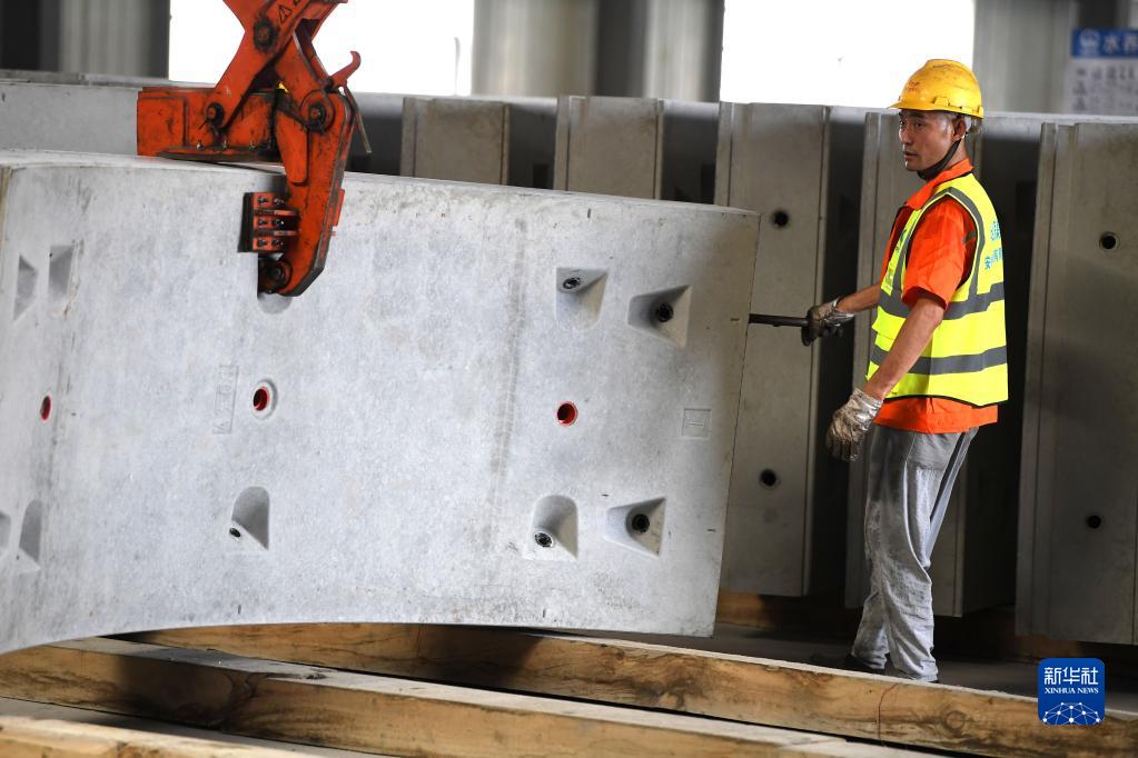 8月9日,工人在中鐵四局安徽智能制造有限公司盾構管片制造基地忙碌。