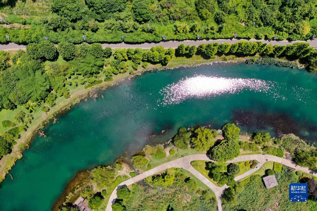 近日,貴陽(yáng)市花溪國家城市濕地公園內處處綠意盎然,碧水青山吸引游人前來(lái)游玩。