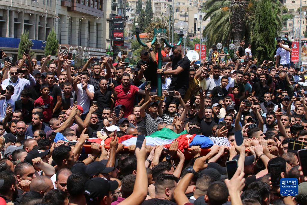 8月9日,人們在約旦河西岸城市納布盧斯參加被以色列軍隊打死的巴勒斯坦人的葬禮。