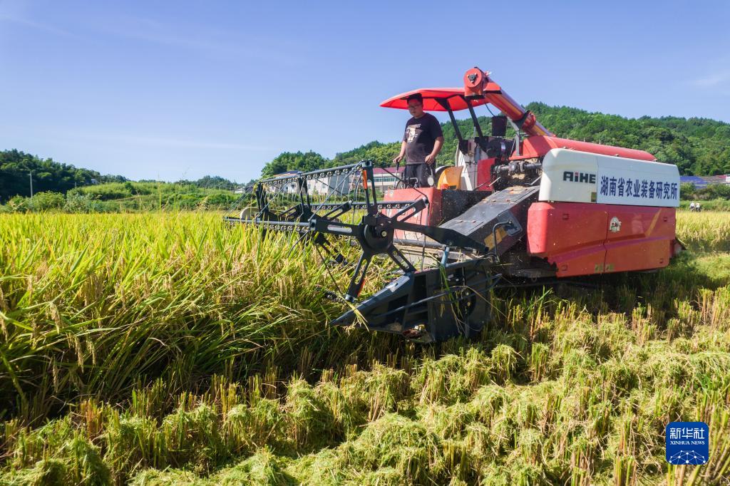 這是8月10日在湖南省長(cháng)沙市寧鄉市流沙河鎮拍攝的“一季雜交稻+再生稻”生產(chǎn)模式寧鄉示范基地頭季稻測產(chǎn)驗收現場(chǎng)(無(wú)人機照片)。