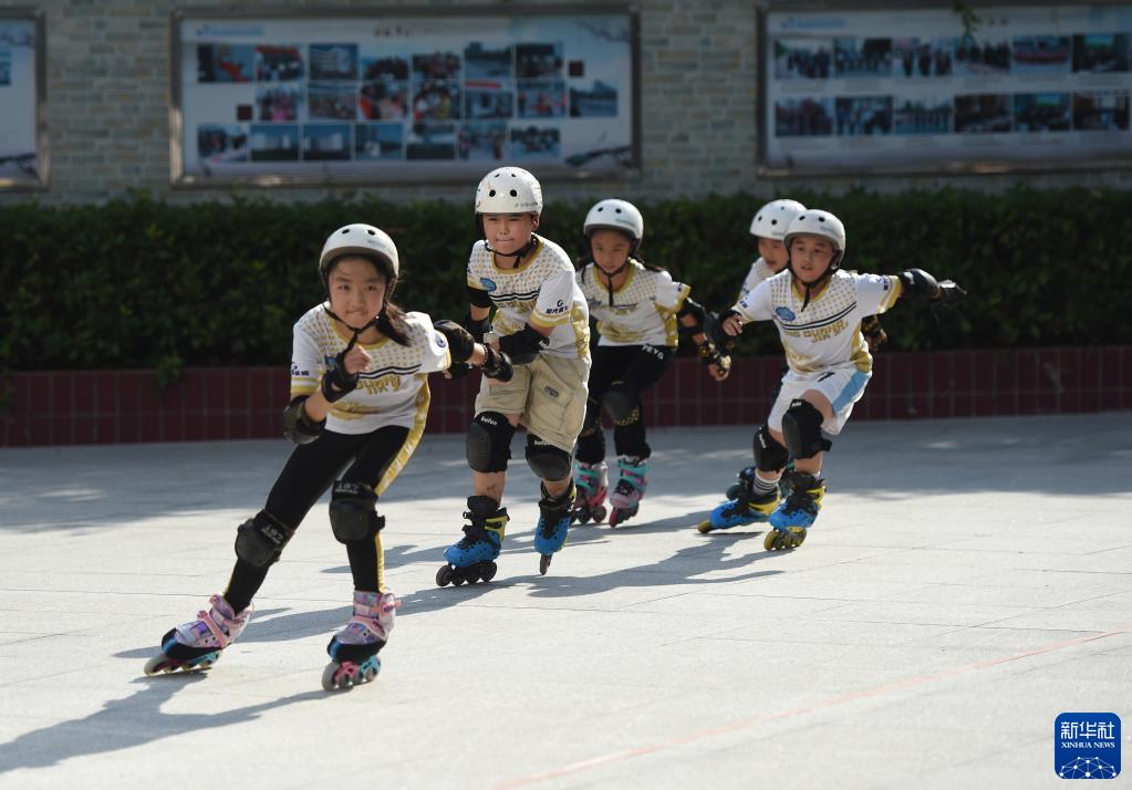 8月10日,合肥市鳳凰城小學(xué)的學(xué)生在暑期托管班里學(xué)習輪滑。