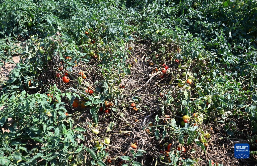這是8月12日在意大利倫巴第大區曼托瓦拍攝的因干旱受損的西紅柿。
