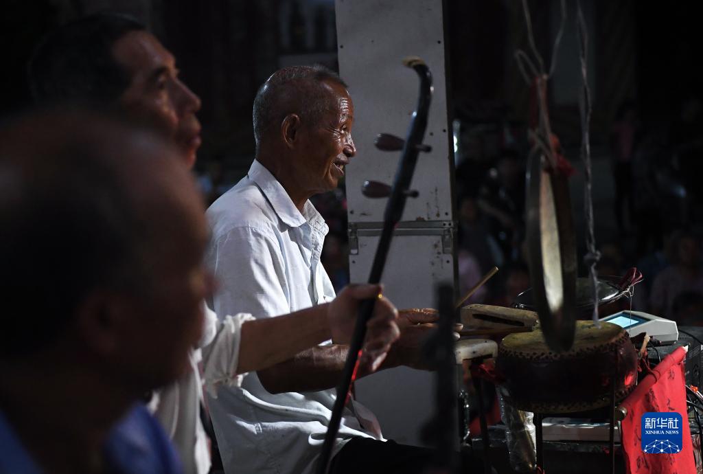 在江西省廣昌縣塘坊鎮大株村,木偶劇團老成員謝家勝在演出中(8月10日攝)。