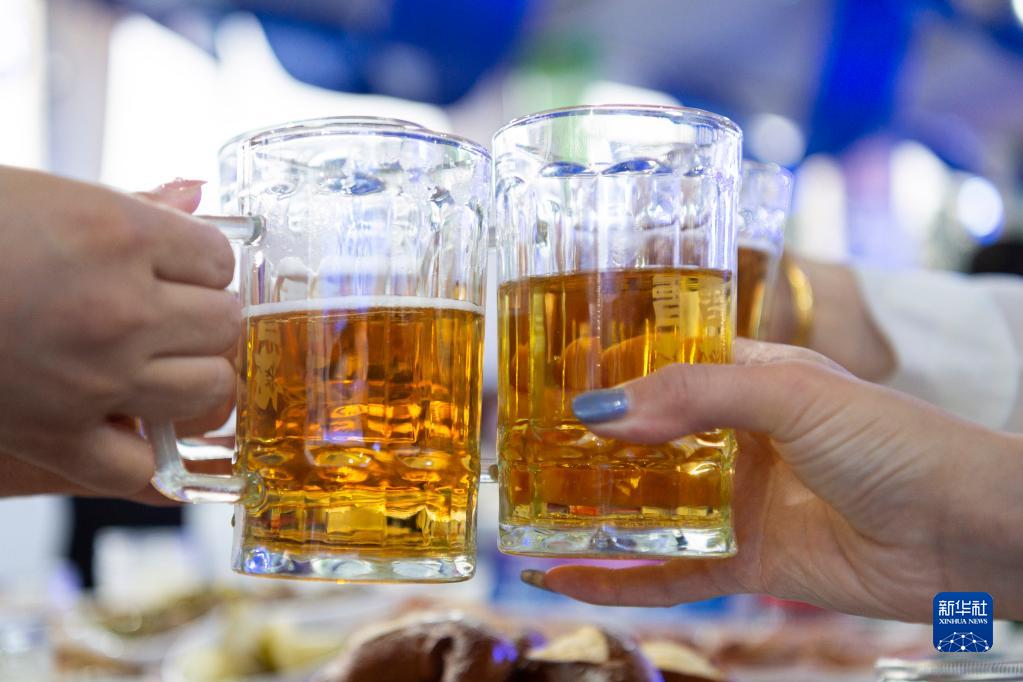 8月16日,顧客在哈爾濱國際啤酒節現場(chǎng)品嘗啤酒。
