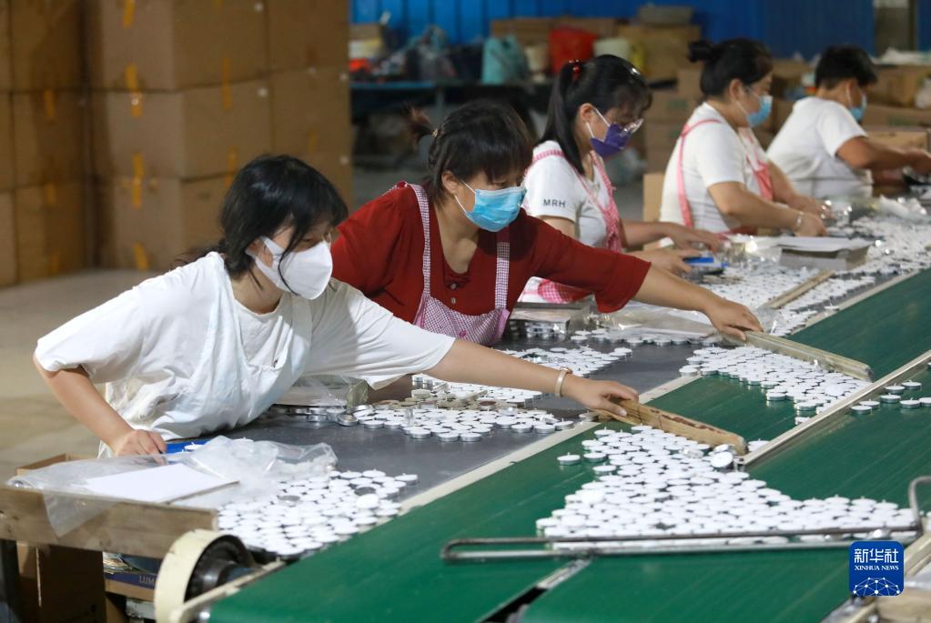 8月17日,在河北省石家莊市行唐縣一家外貿蠟燭生產(chǎn)企業(yè),工人在分裝蠟燭。
