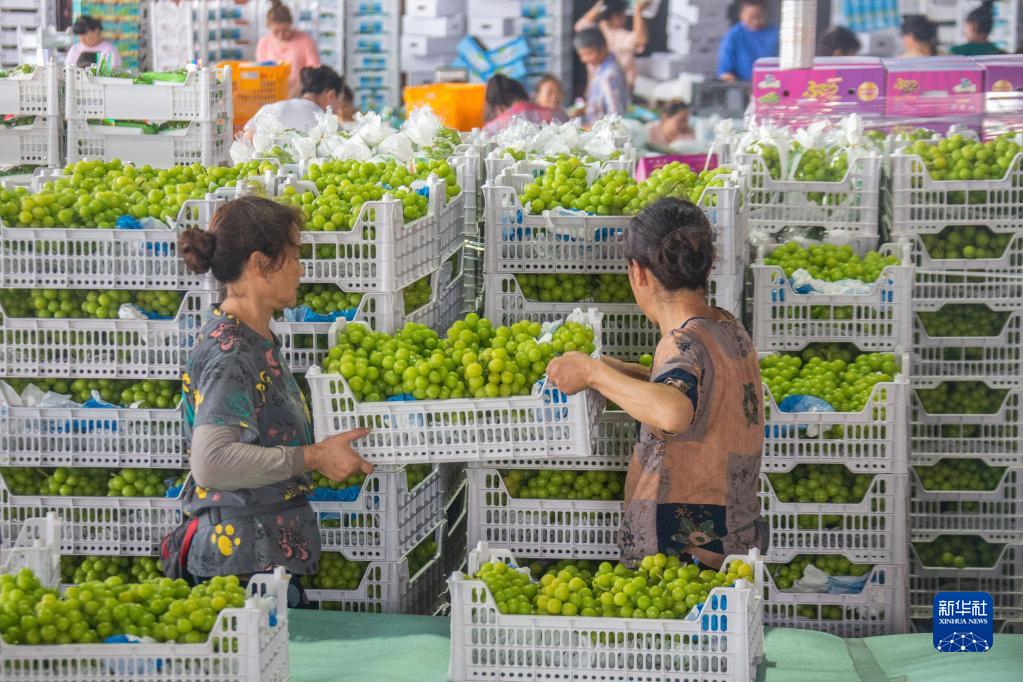 當日,四川省眉山市彭山區葡萄種植基地內一派忙碌,工人將葡萄采摘、稱(chēng)重、套袋、裝箱,運往各地市場(chǎng)。據了解,當地應用數字化大棚技術(shù),通過(guò)智能化管理系統,能有效緩解連日來(lái)高溫天氣對葡萄產(chǎn)生的不利影響,實(shí)現穩產(chǎn)穩收。