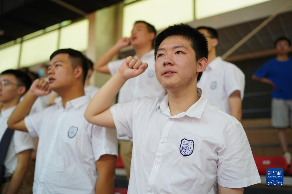 在位于南昌的江科附中高中部畢業(yè)典禮上,劉熙鴻參加成人禮宣誓(8月13日攝)。