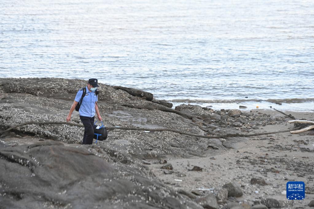 8月23日,在莆田市秀嶼區埭頭鎮黃瓜村,許偉偉走在海岸的礁石上。漲潮后,這里經(jīng)常會(huì )有游客被困,因此許偉偉會(huì )在海岸線(xiàn)巡邏并提醒他們。